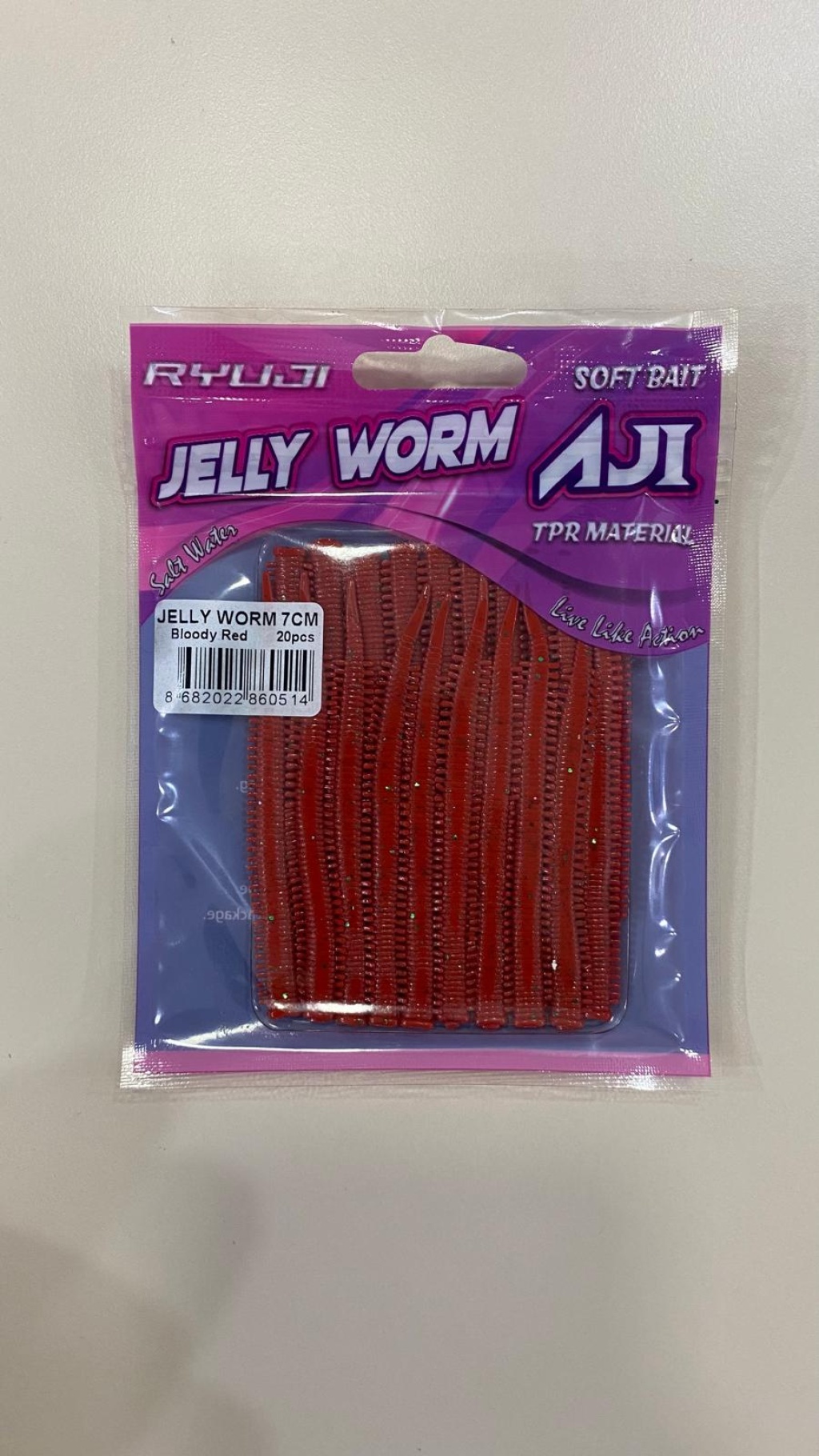 3-RYUJI JELLY WORM TPR 7.5CM, 20AD. Bloody Red