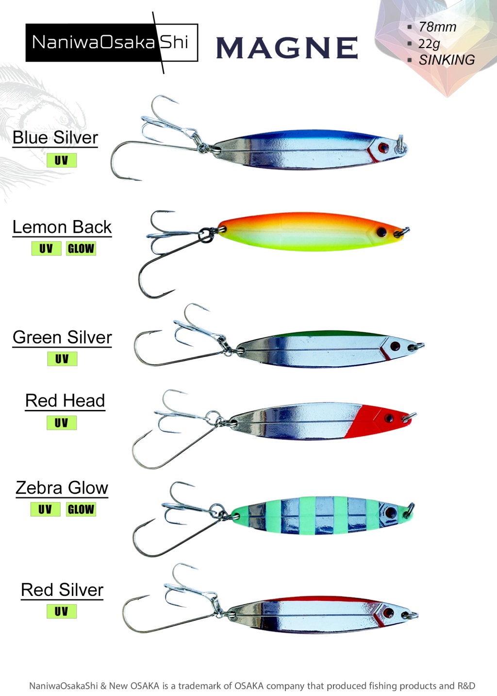 Denizde ve tatlı sularda kullanabileceğiniz geniş renk seçeneği ile beraber NANIWAOSAKASHI MAGNE KAŞIK